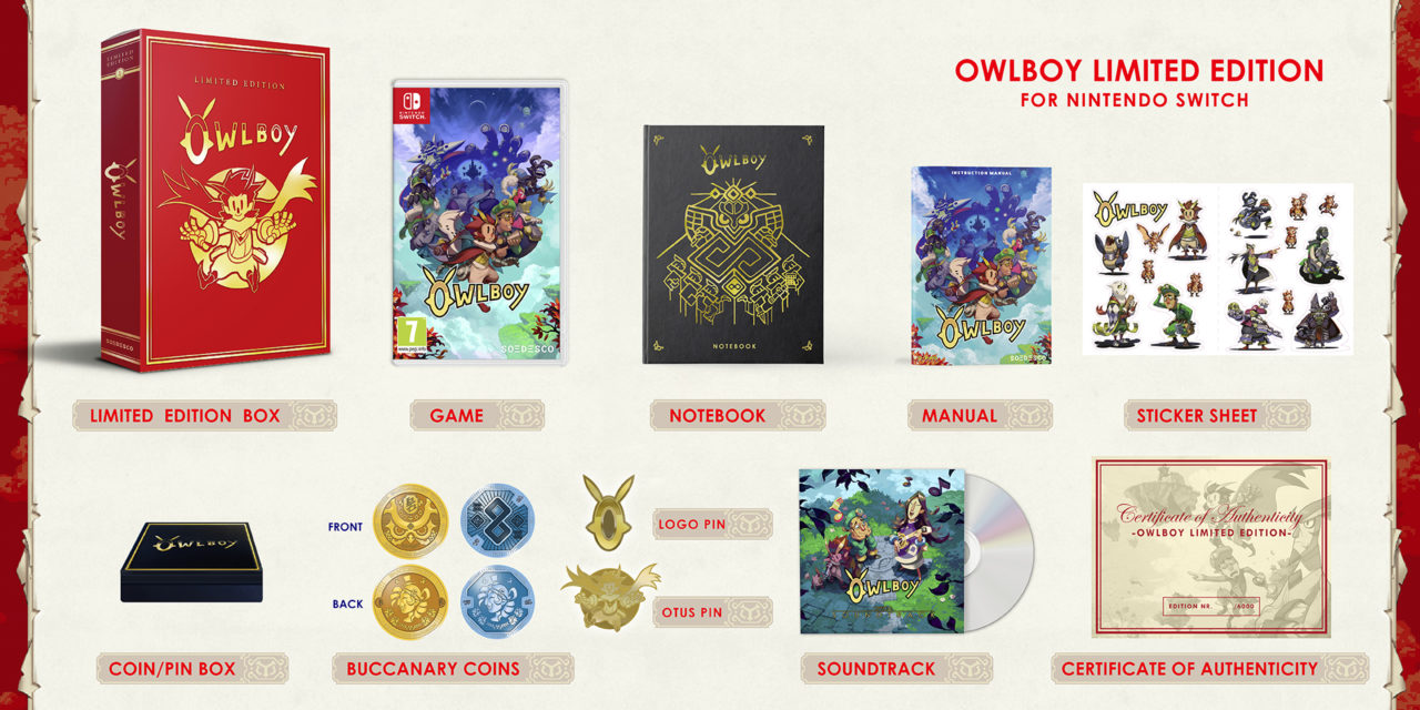 Fa poc us informàvem a les nostres NTHNews de que Nintendo Switch i PS4 rebrien una edició limitada del joc Owlboy. De dita edició n’hi haurà 6000 unitats mundials, però desconeixíem el contingut d’aquesta. Ara, gràcies a la informació exclusiva que ens han ofert la gent d’Avance Oficial, ja en tenim tots els detalls i us l’oferim en català! L’edició limitada d’ Owlboy inclou el joc base per a Nintendo Switch o PS4 ™ a més d’una àmplia gamma d’atractius articles de col·lecció, en una caixa exclusiva d’edició limitada.